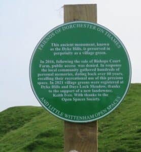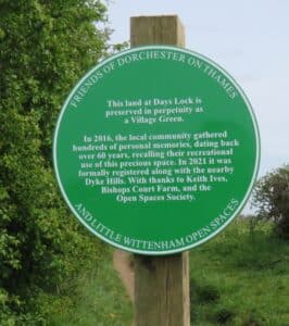 With residents of the Oxfordshire village of Dorchester on Thames, we have celebrated the erection of plaques on the new village greens at Dyke Hills and Day’s Lock Meadow.